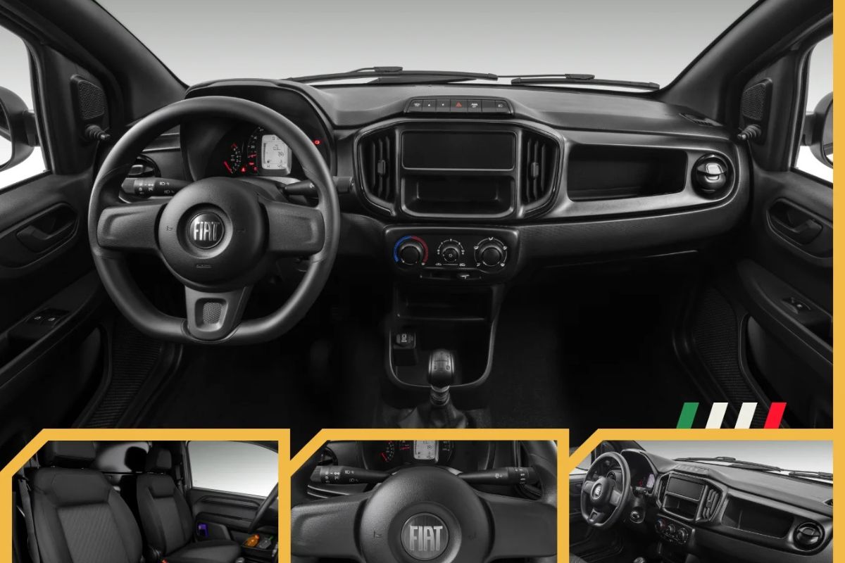O visual também passou por atualização. Capô, faróis e para-lamas ganharam desenho mais moderno. O painel de porta em preto, o Fiat Logo Script e a Fiat Flag na grade reforçam a identidade do modelo.