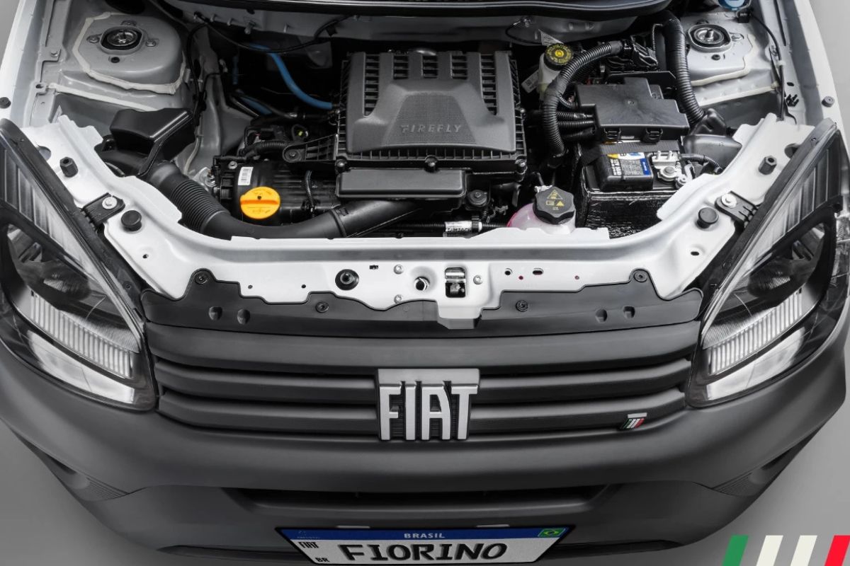 O Fiat Fiorino vem equipado com o motor GSE 1.3 Flex, que entrega bom equilíbrio entre desempenho e economia para uso urbano e comercial. A direção elétrica facilita manobras, enquanto o iTPMS monitora a pressão dos pneus, recurso importante para quem roda diariamente com carga.